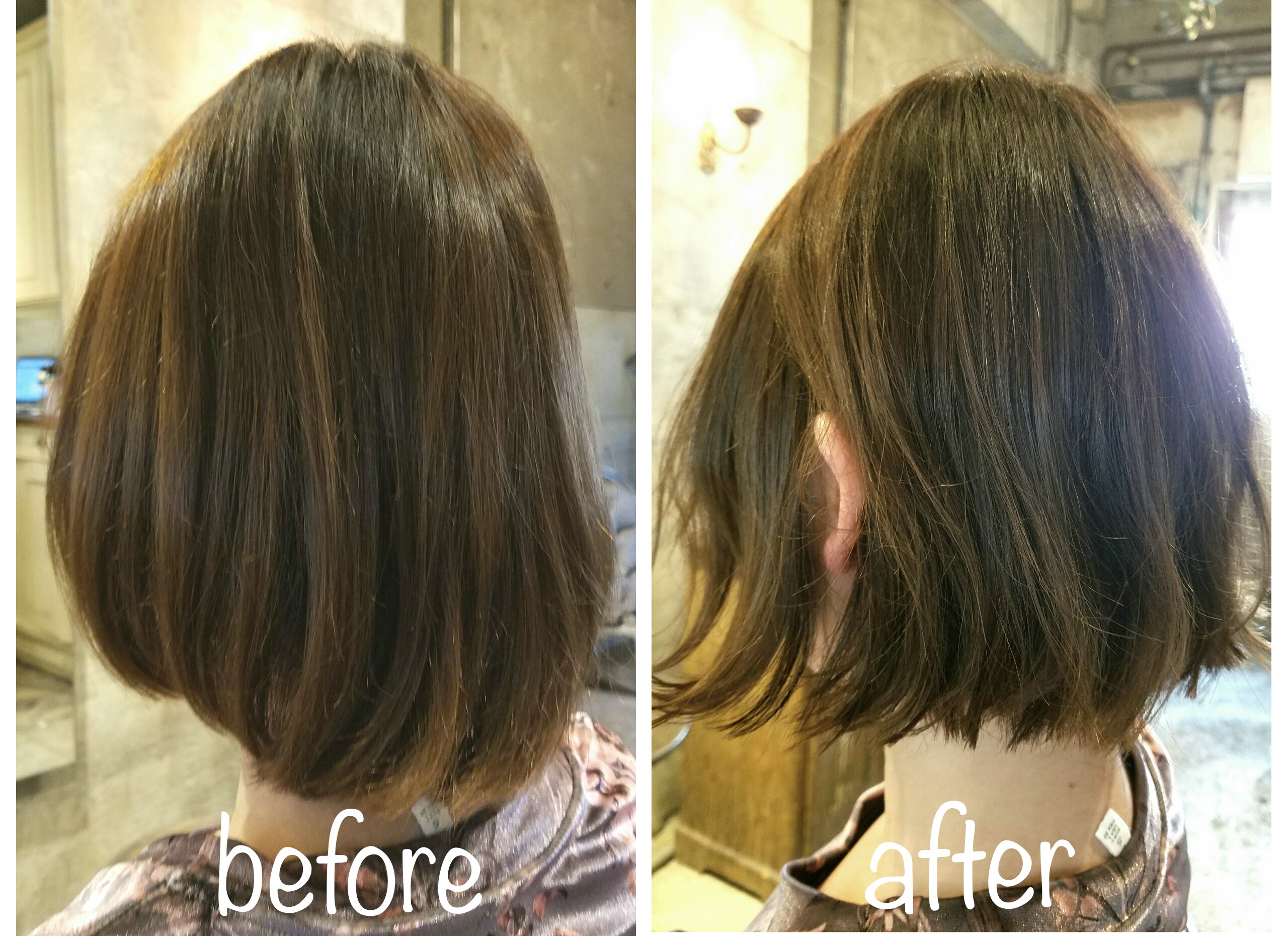 こちらは前上がりボブ~水平ボブにスタイルチェンジされたお客様です。