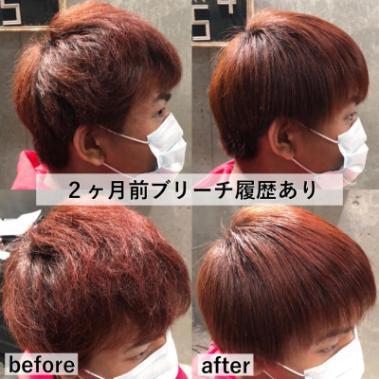 ・2ヶ月前ブリーチ1回履歴ハイトーンくせ毛メンズさんブリーチ縮毛矯正