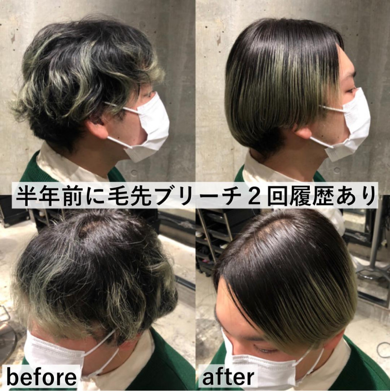 3ヶ月前に全体ブリーチを1回しているメンズさんのご来店!