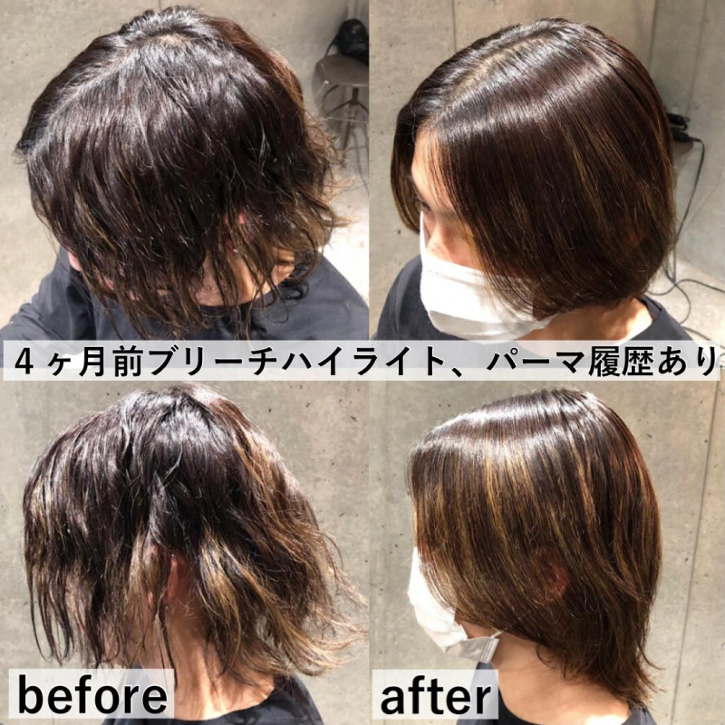 4ヶ月前にブリーチでハイライトを入れてその後にパーマ履歴があるメンズさん