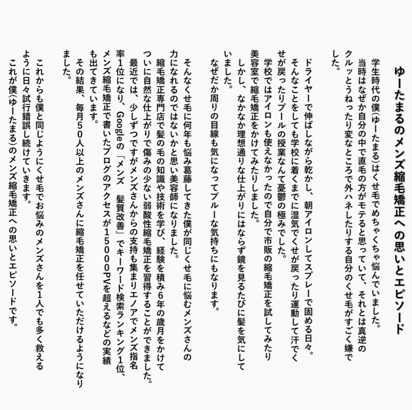 「メンズ弱酸性縮毛矯正」について詳しく書いたブログはこちら☟