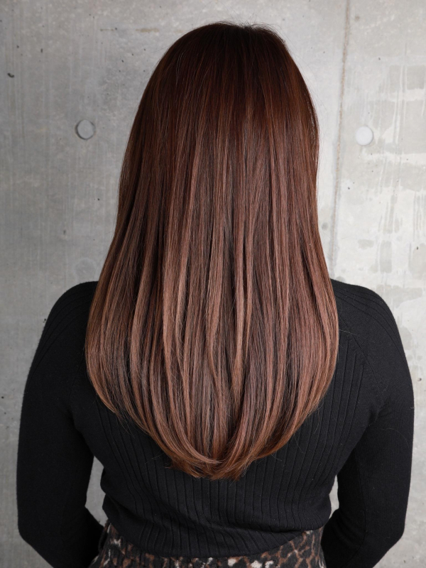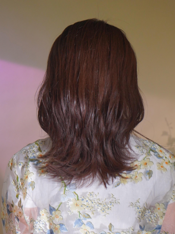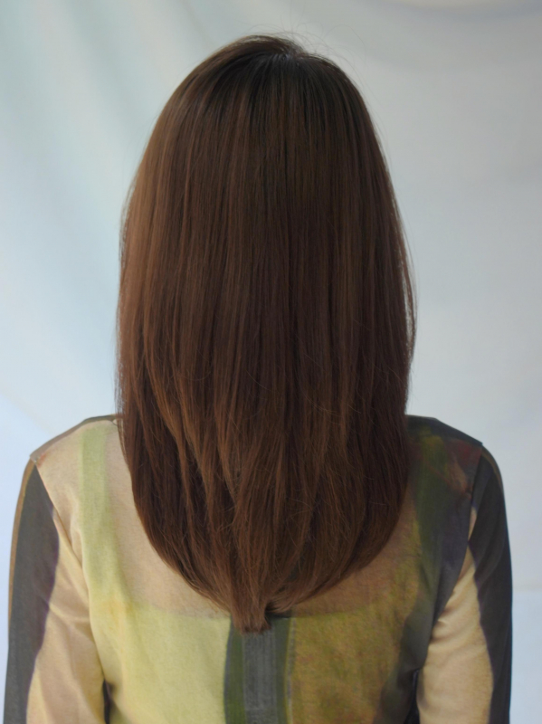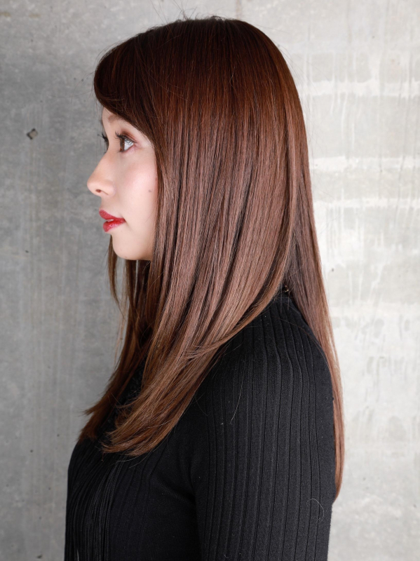 暗めカラーで、30代・40代にもおすすめのストレートセミロング。