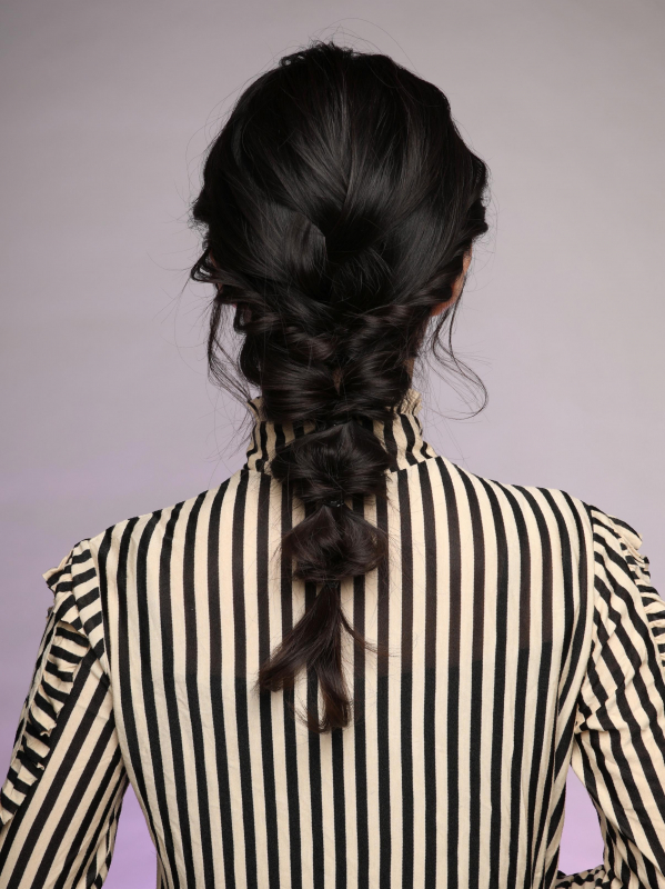 編み込み×黒髪で大人可愛いセミロングアレンジ
