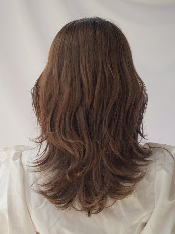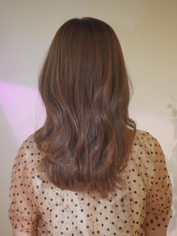 韓国風のくびれ巻きを取り入れて、上品な大人可愛いセミロングに仕上がります。