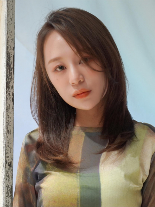 シースルーバング×韓国風ゆる巻きでトレンドの大人可愛いセミロングの完成です。