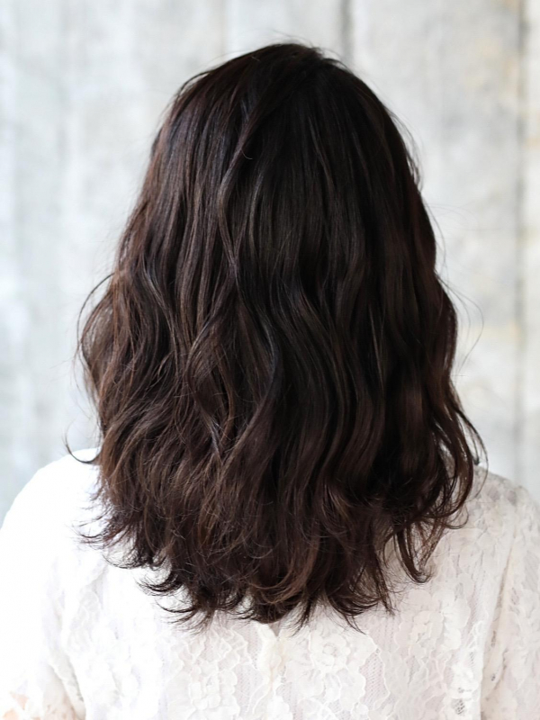 海外風の大人可愛い黒髪パーマのセミロング