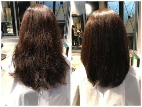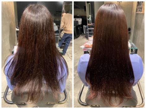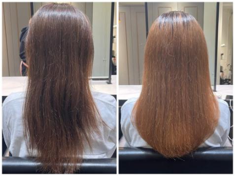 ・Before…毛先が不揃いで、パサパサとした印象です。表面に飛び出ているダメージ髪が目立ち、チリチリに見えます。