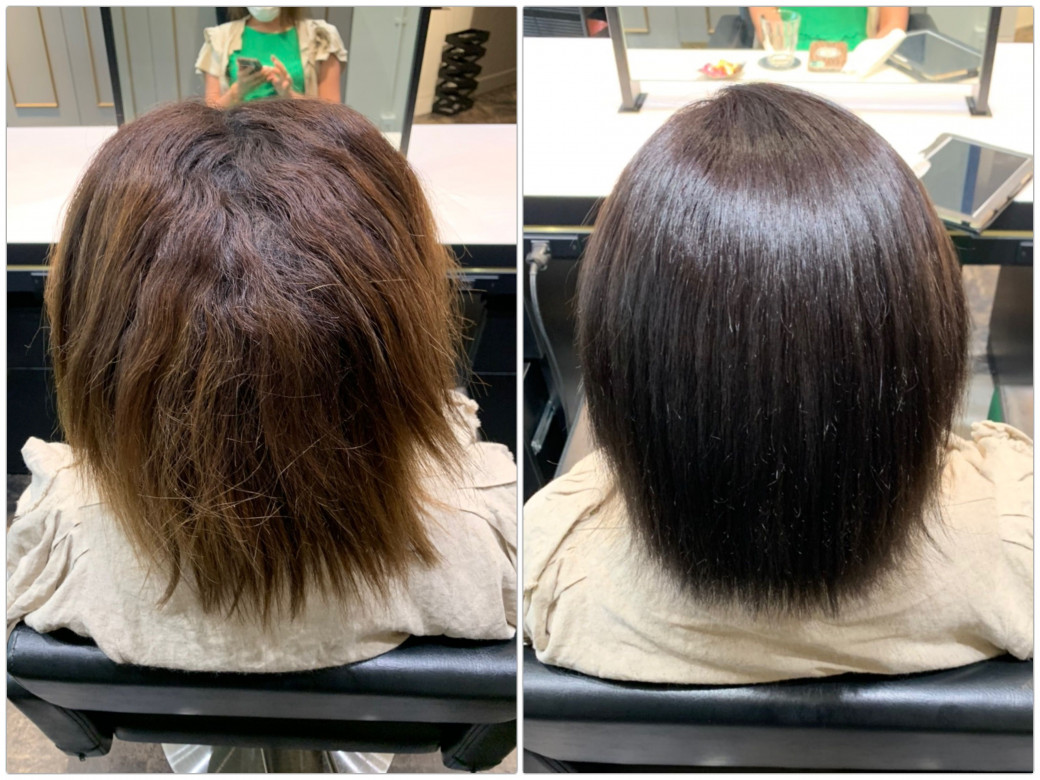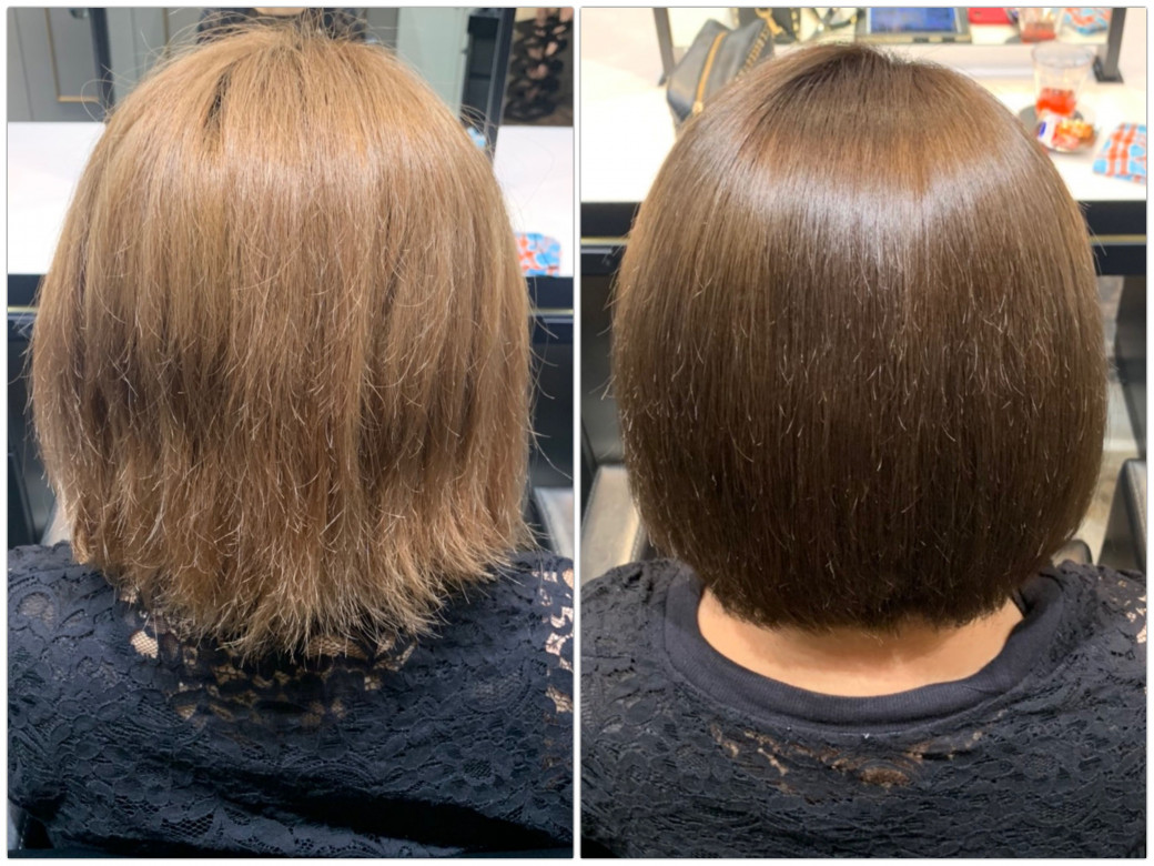 ・After…髪表面のクセが無くなり、根元から毛先まで、光沢のある質感に変わりました。自然なAラインに。
