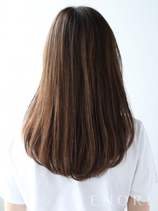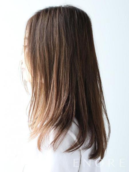 王道なナチュラルストレートもブローせず洗いざらしの様なゆるいウェーブを活かしてカジュアルに。ちょっぴりバサっとスタイリングすしましょう。またカラーは明るめブラウンからのシークレットグラデーションで毛先がほんのり明るくヘアカラーに透明感をプラスしました。しっかりとヘアケア。保湿スタイリングをする事で明るめの髪でもパサつかず、上質なヘアスタイルになりますよ!
