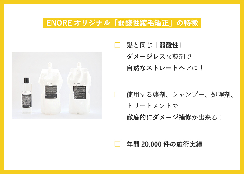 縮毛矯正もカラーもしたい方へ。エノアはダメージレスな髪質改善メニューとオリジナルのヘアケアアイテムを豊富にご用意。お客様一人一人に合わせた提案をさせていただきます!髪の事でお困りでしたら是非お気軽にご相談ください。とってもお得なクーポンもございます!