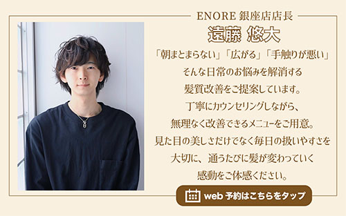 こんにちは。髪質改善が得意な美容院ENORE(エノア)銀座店店長遠藤です。