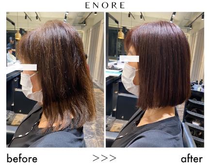 →内部補修もそうですが、よりキューティクル補修と保湿がしっかり出来るトリートメントがおすすめ。(エノアで言うと「エノア髪質改善トリートメント」)