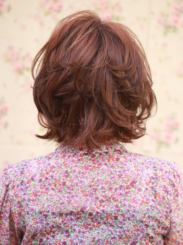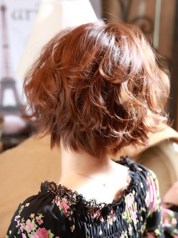 3つめは、茶色レッド系カラー×ラフなパーマボブです。
