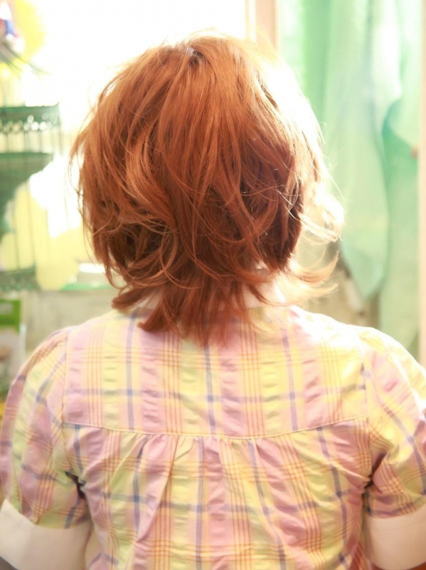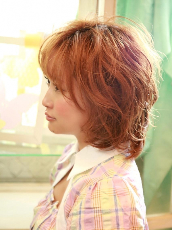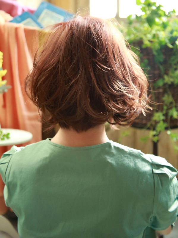 暖色系カラーのボブに、軽いウェーブやテクスチャーを加えると、自然でかわいい雰囲気に!