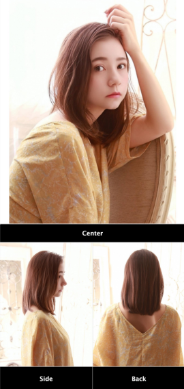 サイドバングの毛先をこめかみに沿わせ、小顔効果も期待大です。