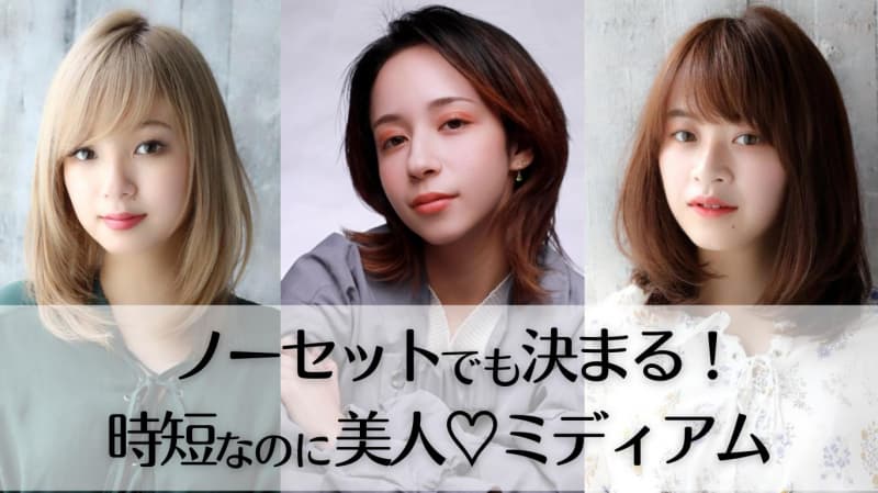ノーセットで時短なのに美人見えがかなうミディアムヘアをご紹介しました。