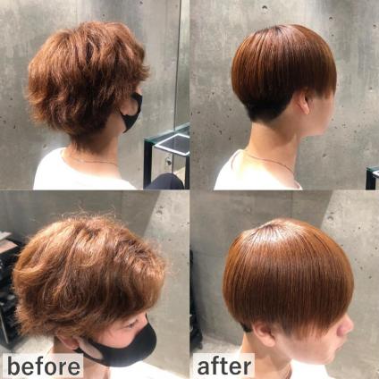 仕上がりは別人のようにボリュームが少なくなり、ツヤツヤサラサラで自然な仕上がりになりました!