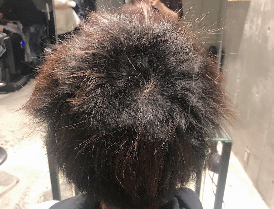 毛先はパーマ履歴もありダメージによるパサつきも出ています。