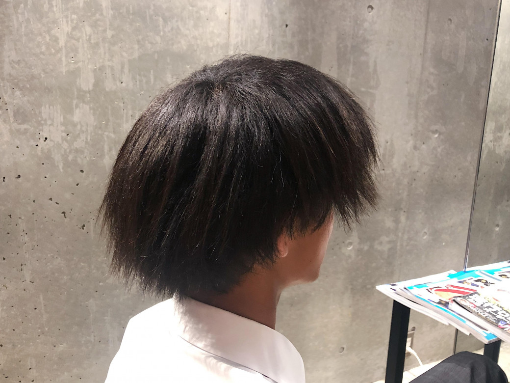 毛量が多く癖と相まってカッパシルエットになってしまったメンズさん。