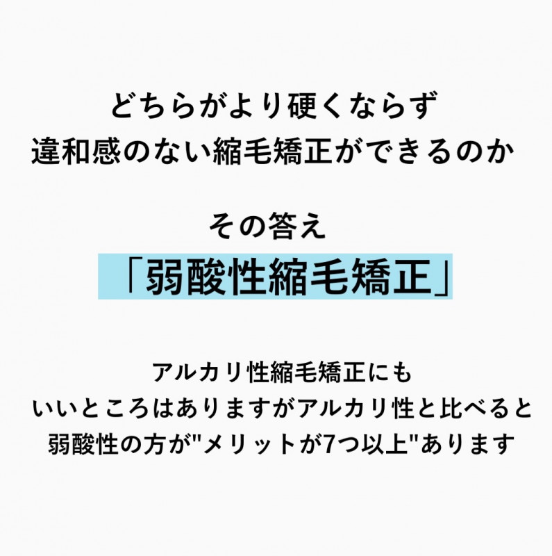一般的な縮毛矯正は「アルカリ性の薬剤」を使って行うものなのですが