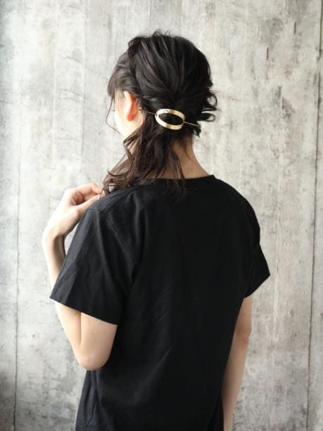 このスタイルは、耳より少し上の高さから髪の毛を挟むことがポイント。