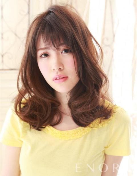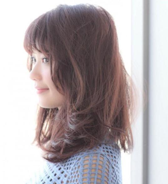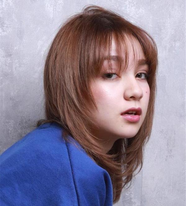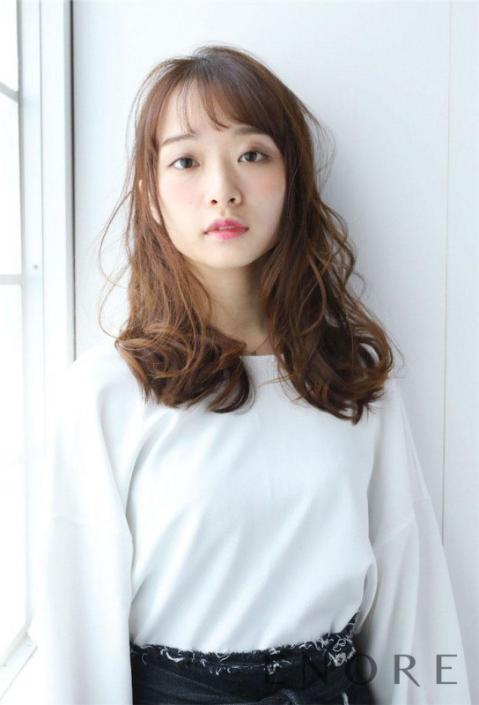 切りっぱなしに近い重めのミディアムヘアは前髪を浅めにとってスッキリと見せましょう!デジタルパーマで柔らかなカールがついてるのでスタイリングの際にカールを崩しながらスタイリングしてあげると良い感じに抜け感のある魅力的な仕上がりに。