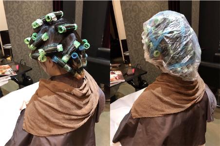 一般的な普通のパーマ(コールドパーマ)も薬液の反応を促進させるため、頭全体を温める事がありますが↓
