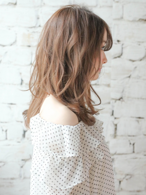 前髪なしで大人フェミニンなウェーブ×セミロング