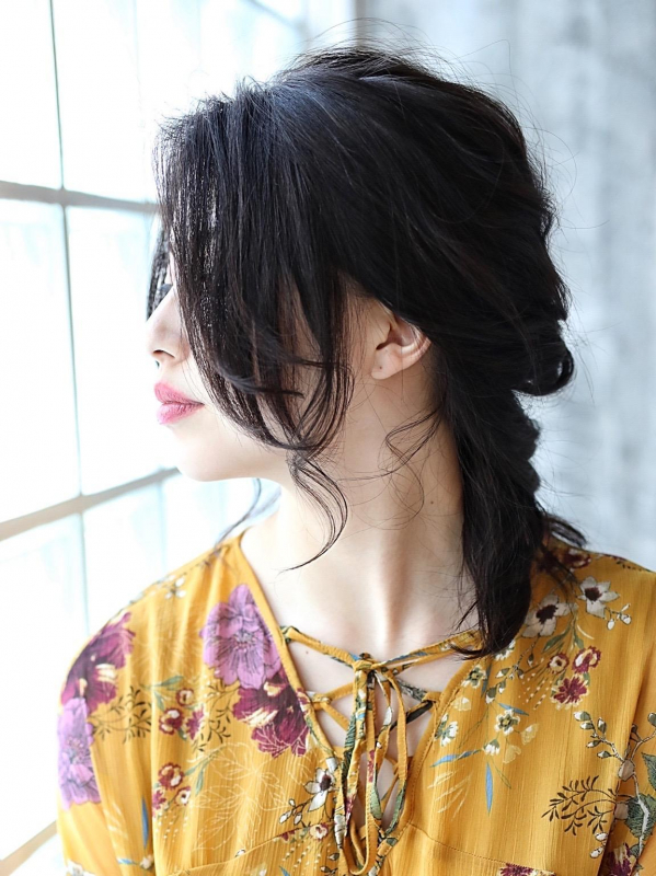 顔周りの後れ毛はたっぷり残せば、垢抜けたムードに仕上がります。