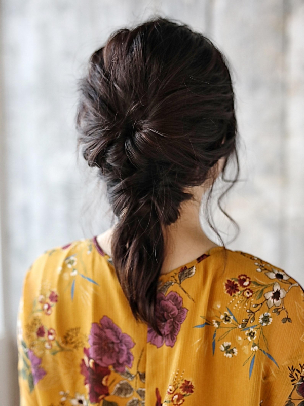 垢抜けて見えるポイントは、くるりんぱして結び目を隠すだけ。