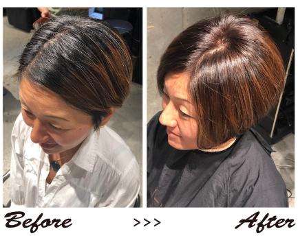 実際に髪のごわつきやパサつきなどエイジング毛で悩んでいらした方の髪はこんな感じで変わりました↓