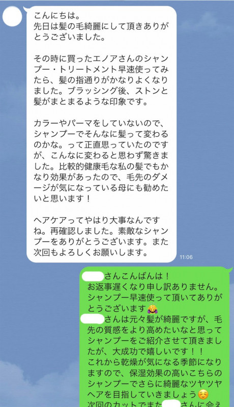 もし、ツルツル感やサラサラ感を持続させたい方は同シリーズの「エノア弱酸性トリートメント」をお使いいただくのがおすすめです↓