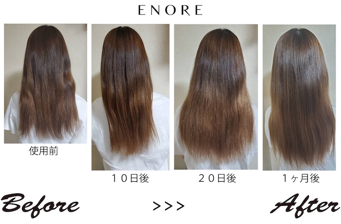 こうする事で「ダメージに強く、傷みにくい髪づくり」が出来、ダメージに強い髪づくりが出来れば、日常の中で髪が受けるダメージは必然的に減ります。エノア弱酸性シャンプーを使えば、綺麗で艶やかな髪を保つ事が出来るんです!