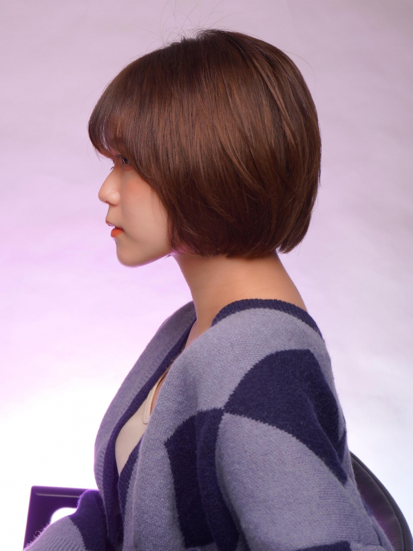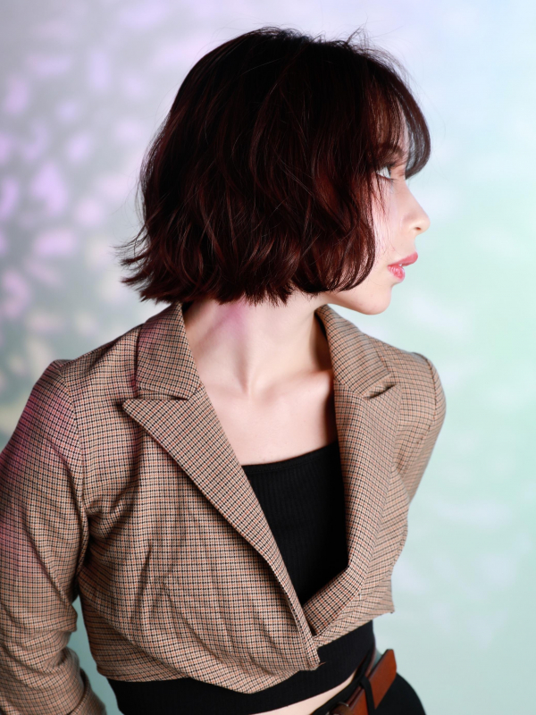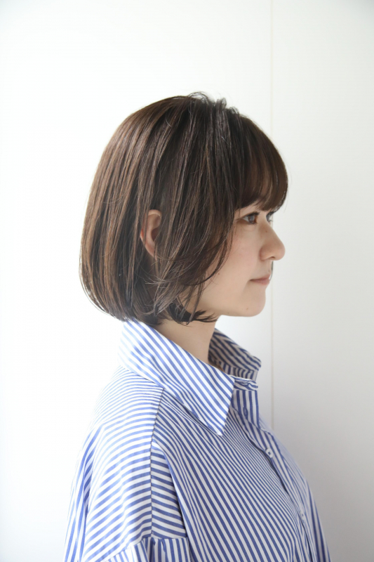 前髪ありのショートボブは、面長さんの気になる顔の縦ラインをカバーします。