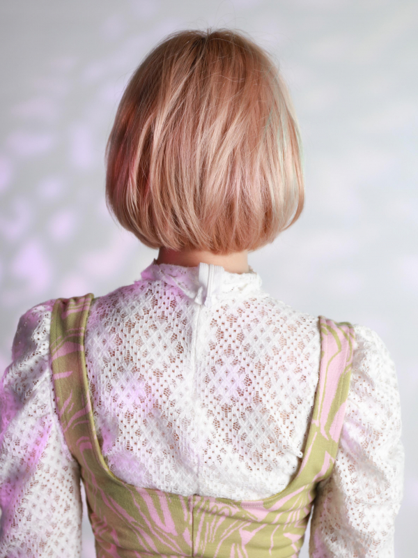 ひし形シルエットが丸顔さんに◎!20代に似合うハイトーンショートボブ