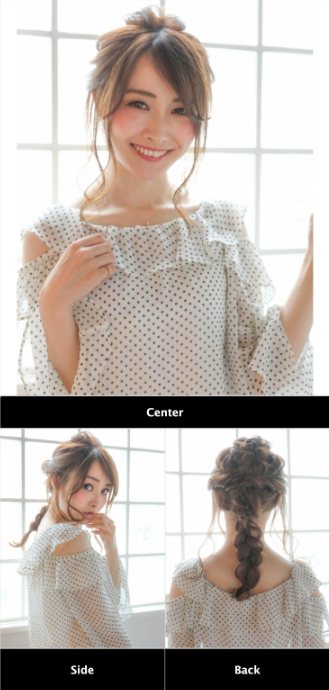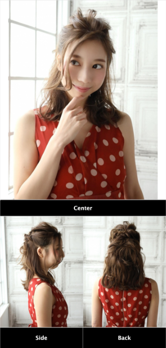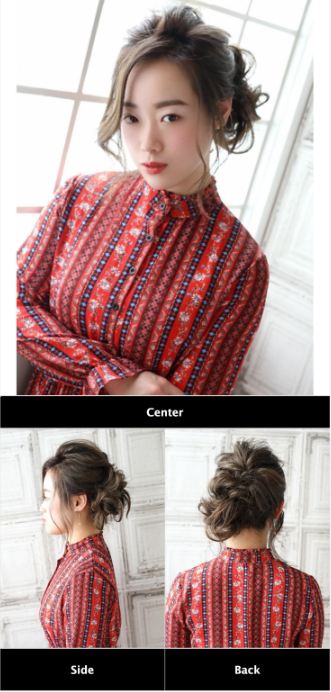 ■アレンジ:前髪がないことで、大人っぽい雰囲気は残しつつ、華やかです。