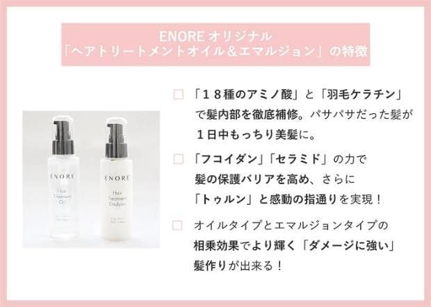 先程シャンプーと洗い流すトリートメントはおすすめの商品を紹介させていただいたので、ここではエノアで縮毛矯正をしている方から絶大な人気を誇るトリートメントを簡単にご紹介しますね!