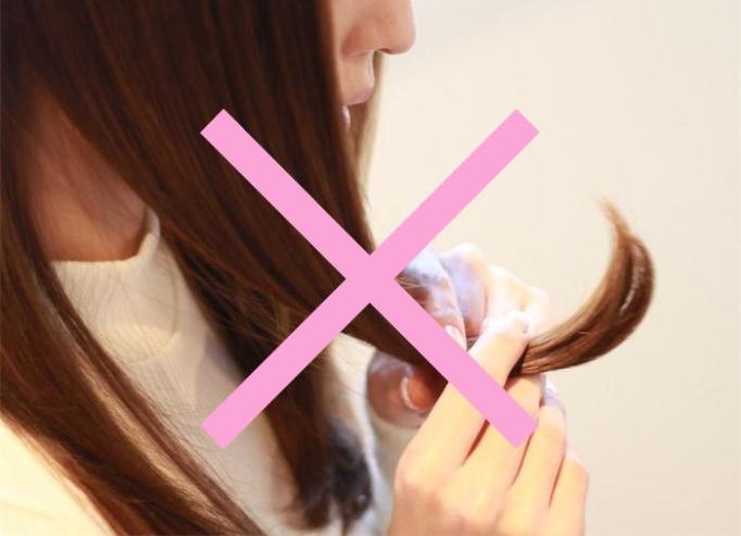 毛先→髪質改善トリートメント(エノアでは弱酸性酸熱トリートメント)