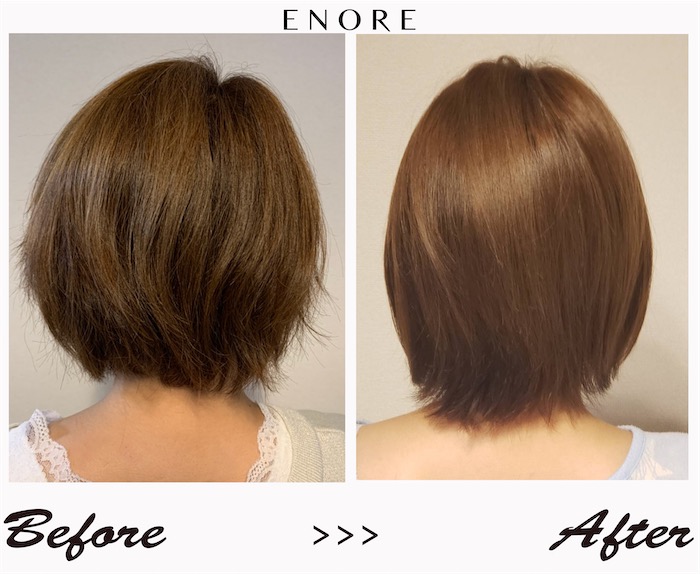 ※エノアのメニューでは「エイジング効果のあるシステムトリートメントを『髪質改善トリートメント』、「オリジナルの酸熱トリートメントを『弱酸性酸熱トリートメント』」とメニュー表記していますのでご注意ください。