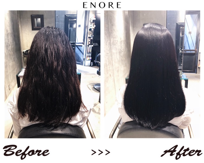 縮毛矯正のダメージが心配な方へ。エノアではダメージレスな髪質改善メニューやオリジナルのヘアケアアイテムを豊富に取り扱っています。お得なクーポンもありますので、お困りの方は是非お気軽にご相談ください。