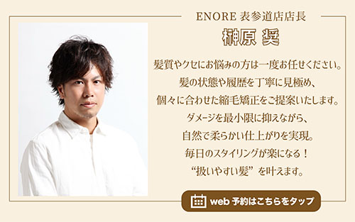 こんにちは!髪質改善と縮毛矯正の得意なENORE(エノア)表参道店店長榊原です!