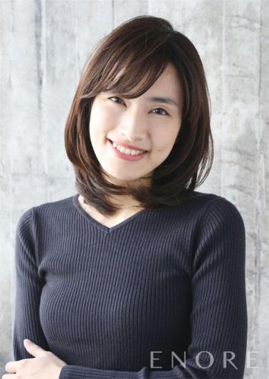 ふんわりと軽やかな仕上がりにしたい方は重すぎず軽すぎないレイヤーミディアムがおすすめ。ふんわりとヘルシーな印象に仕上がります。髪がパサついて見えないようにダークブラウンでしっかりと白髪を染め、しっとり感を出しているのもポイントです。レイヤーが入っているので毛先はストレートアイロンで軽く丸みをつけてスタイリングすると、毛先にまとまりとヘアスタイルに立体感が生まれておしゃれになりますよ。