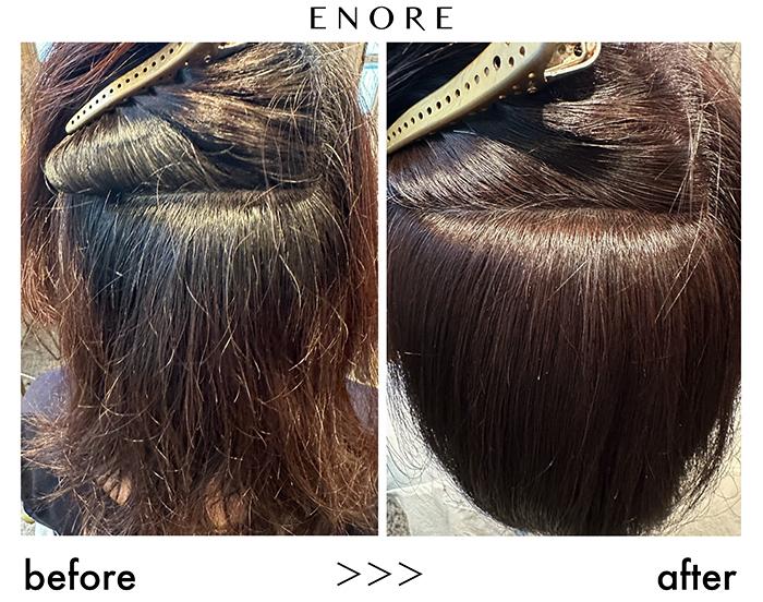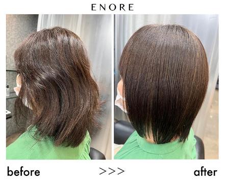 白髪も綺麗にしつつ縮毛矯正でくせ毛を伸ばしたい方へ。エノアはダメージレスな髪質改善メニューとオリジナルのヘアケアアイテムを豊富にご用意。お客様一人一人に合わせた提案をさせていただきます!髪の事でお困りでしたら是非お気軽にご相談ください。とってもお得なクーポンもございます!