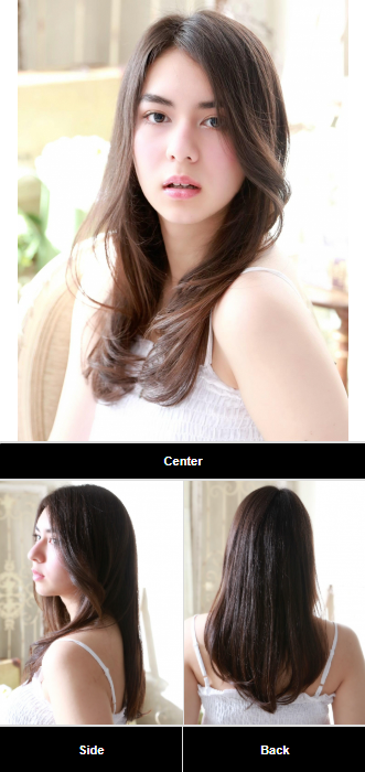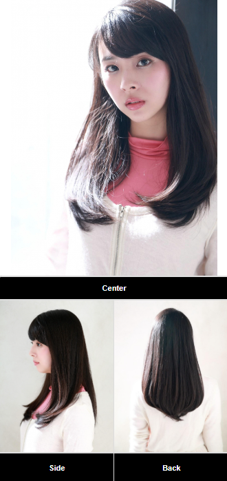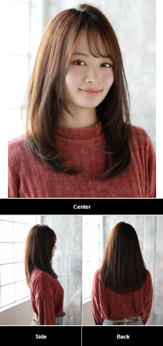 前髪なしでセンターパートにすると、丸顔さんに似合うヘアスタイルの完成です。