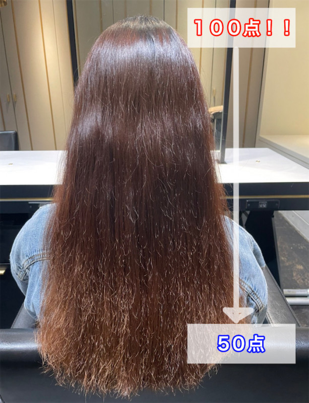 つまり、髪の美しさは生えたての何もしていない髪が「100点満点」の健康毛!!
