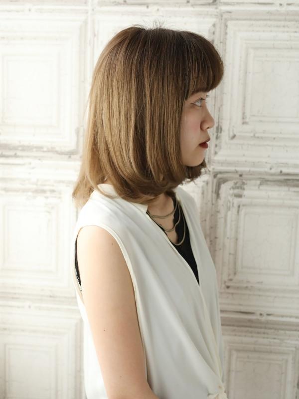 厚めの前髪は小顔見せにも効果的です。
