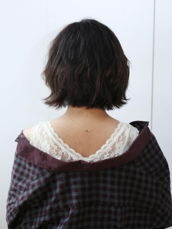 短めに切りっぱなしにしたボブ。