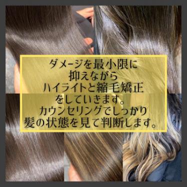 縮毛矯正もハイライトどちらもダメージしやすく、失敗するリスクも高い施術になりますので、万が一失敗した時でも相談しやすい。任せやすい行きつけの美容師さんを作っておくのが安心ですよ!