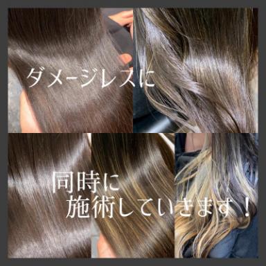 ダメージレスに縮毛矯正をしながらハイライトの同時施術出来ます。