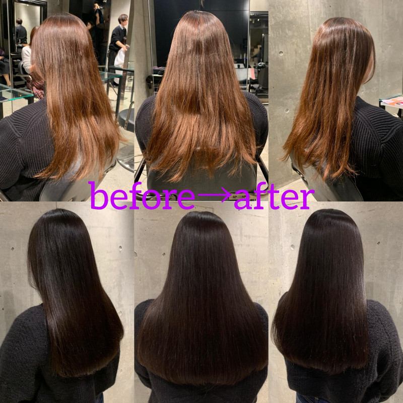 弱酸性縮毛+弱酸性カラー+髪質改善トリートメント
